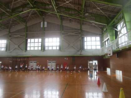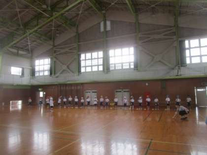 校内体力テストに向けてソフトボール投げの練習をしました。