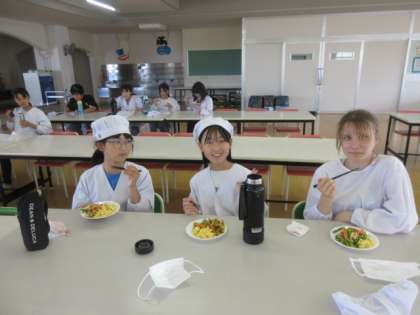 【6年生】調理実習3 公開日 2023/05/30 更新日 2023/05/30 6年生 出来上がった料理を食べて班の人と感想を交流しました。子どもたちから、自然と次はこうしたらよいと前向きな言葉が出てきて学びを活かそうとする姿が見られました。