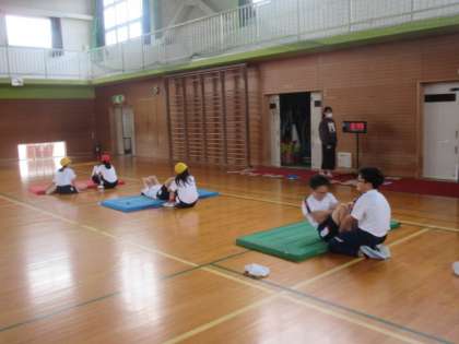 今日の体育では、新体力テストに向けて上体起こしと反復横跳びの練習を行いました。プラス1を合い言葉に去年より一回でも多く記録を伸ばせるように練習に励んでいました。
