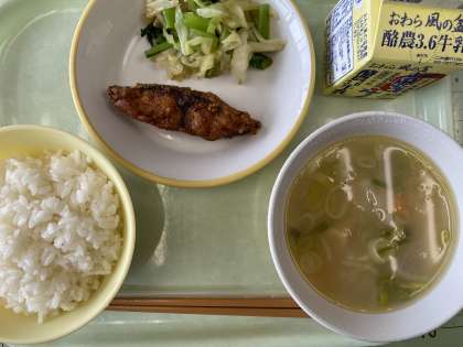 6月1日(木) 今日の給食 公開日 2023/06/01 更新日 2023/06/01 お知らせ・お願い 今日の献立は、ごはん、魚の竜田揚げ、小松菜ひたし、呉汁、牛乳です。 呉汁は日本各地に伝わる郷土料理で、大豆を水に浸し、擂り潰したペーストを呉といい、呉を味噌汁に入れたものが呉汁だそうです。一見、普通のお味噌汁ですが、汁を飲むと後味に大豆の粉が感じられます。 魚の竜田揚げは、ふくらぎでした。カリカリに揚がっています。 今日もおいしくいただきました!
