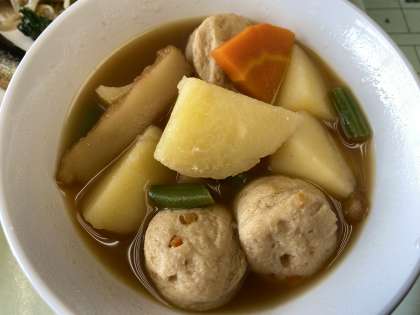 今日は、純和食と言える献立ですね。関東だきには、しゃきしゃきのいんげん、汁をたっぷり吸ったがんもがたくさん入っていました。