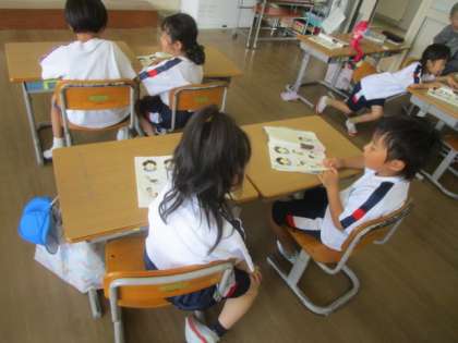 教科書の絵を見ながらペアの友達と、気持ちと理由をはなすことができました。
