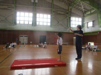 【2年生】体育 公開日 2023/06/14 更新日 2023/06/14 2年生 体育ではマット運動をおこないました。前の授業で前転をした子供たち。今日は上手な人が前にでてしてもらいお手本を見せてもらいながら前転をしました。足をそろえること、着地は両足で立つことを意識すると、前よりも上手に前転することができていました。