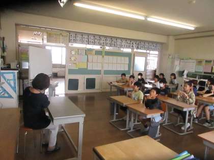 ボランティアの方の読み聞かせに、集中している子供たちです。