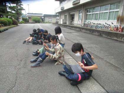 クロムブックで稲の生長を観察しています。