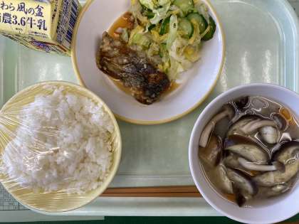 6月29日(木) 今日の給食 公開日 2023/06/29 更新日 2023/06/29 お知らせ・お願い 今日の献立は、ごはん、揚げ魚のレモン味、あわせ和え、具だくさん汁、牛乳です。 具だくさん汁には、その名前のとおり、ナスやしめじ、にんじんなどが、もりもりに入っていました。あわせ和えは、たくあんのポリポリとした食感がとてもよく食べやすく感じました。今日もおいしくいただきました!