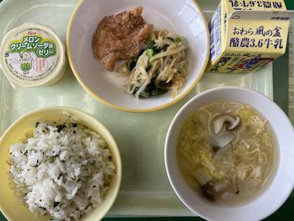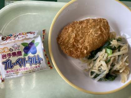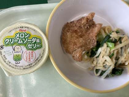 7月6日(木) 今日の給食 公開日 2023/07/06 更新日 2023/07/06 お知らせ・お願い 今日は選択献立です。ごはん、みそ汁、はりはり和え、牛乳。おかずは、白身魚のフライか豚肉の香り揚げです。デザートは、メロンクリームソーダゼリーかブルーベリータルトです。 今日もおいしくいただきました!