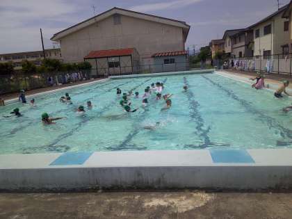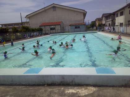 昨日のプール学習の様子です。 ビート板を使って泳ぐ練習などをしました。