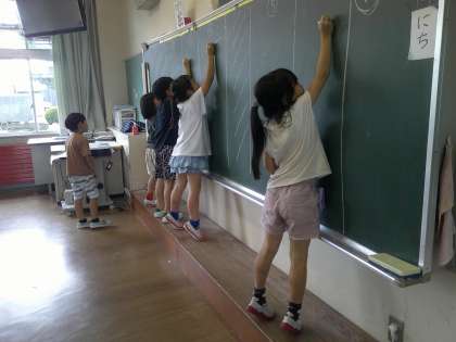 【1年生】学級活動の様子 公開日 2023/07/14 更新日 2023/07/14 1年生 クラスのめあてを達成したので、今日は黒板を使用したレクリエーションをしました。優しい応援の言葉をかける姿がとても素敵でした。