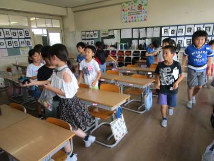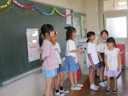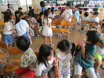 【3年生】お楽しみ会社の集会 ありがとう 公開日 2023/07/14 更新日 2023/07/14 3年生 先日、お楽しみ会社のみなさんが集会を開いてくれました。ゲームは、いすとりゲームと宝探しです。みんなが楽しめるように音楽や宝を工夫してくれたおかげで、あたたかい気持ちになるすてきな集会でした。お楽しみ会社のみなさん、ありがとうね。