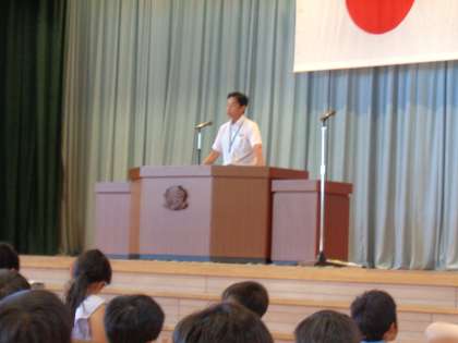 校長先生、生徒指導担当、体育担当からの話を聞き、1学期を振り返るとともに、これから始まる夏休みと2学期に向けての気持ちを高めていたようでした。