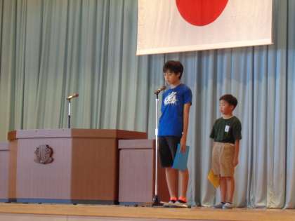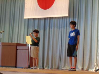 73日間の1学期が終わりました。終業式では、まず、児童代表の頑張ったことの発表がありました。堂々とした発表でした。