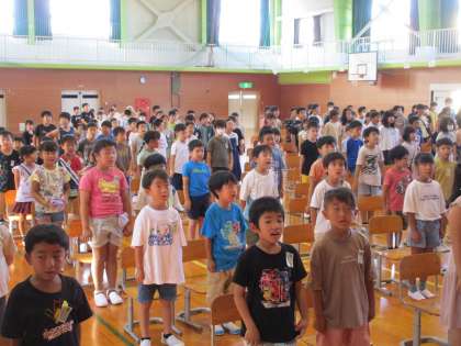 第2学期 始業式 公開日 2023/08/28 更新日 2023/08/28 学校行事 8月28日(月)長い夏休みが終わり、いよいよ今日から2学期がスタートしました。元気な顔で集った神保っ子。それぞれの楽しい思い出を胸に、気持ちも新たに始業式を迎えました。 校長先生からは、2学期は「自分で考える」「自分から動く」そんな学期にしてほしいとのお話しがありました。まだまだ暑い夏は続きますが、体調に留意しながら今日を節目として、有意義な2学期を送ってほしいと思います。