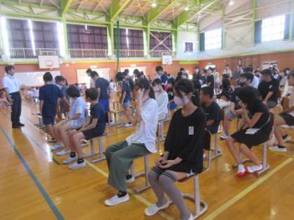 長い夏休みが終わり今日から新学期です。夏休みの体験や楽しかったことをクラスメイトと楽しそうに話す姿が見られました。また、自由研究や自由工作を各クラスで発表しました。