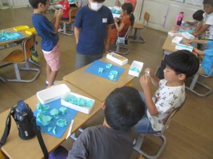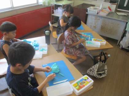 図工では、これまで思い出に残ったことを粘土で表現しました。細かなところまで丁寧に仕上げていました。
