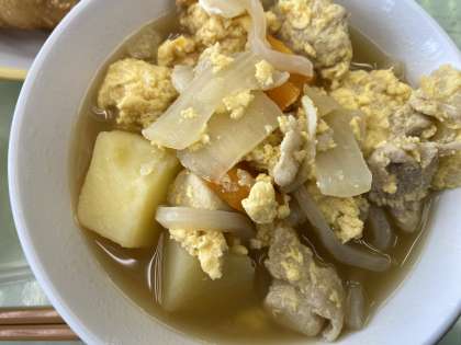 卵とじには、じゃがいもも入っています。ほくほくしています。高野豆腐に出汁がしみています。わかさぎのフリッターはカリカリに揚がっていて食べやすくなっています。