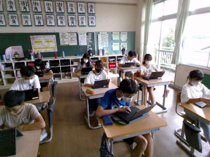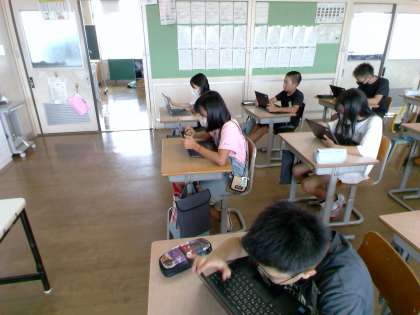 一人一人が撮影した画像をもとに、クロムブックの描画キャンパスで下描きにチャレンジしました。今後への見通しをもつことにつなげています。