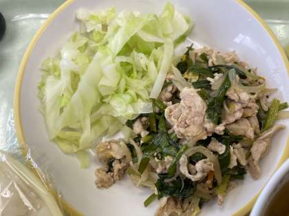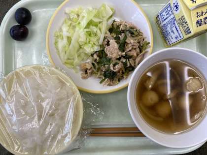 9月6日(水) 今日の給食 公開日 2023/09/06 更新日 2023/09/06 お知らせ・お願い 今日の献立は、ごはん、豚キムチ丼、ゆでキャベツ、茎わかめスープ、巨峰、牛乳です。 豚キムチ丼と名前がついているように、豚キムチを白ごはんの上にのせて食べるようです。私は食べてから気付いたので、残念ながら「丼」にできませんでした。スープには、丸いつみれが入っています。潮の香りがしておいしいです。巨峰がデザートとして出ています。今日もおいしくいただきました!