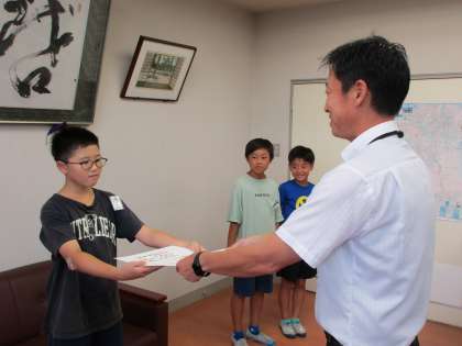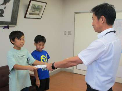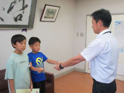 バドミントン、サッカーで活躍した子供たちの受賞伝達を行いました。全国大会や県内での大会で、神保っ子が活躍すること、大変嬉しいです。