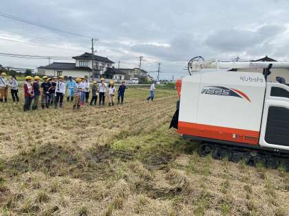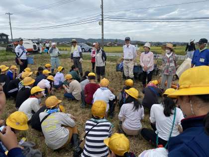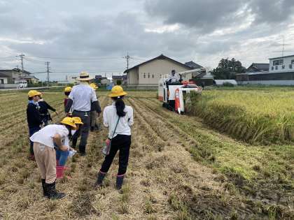 【5年生】稲刈り教室3 公開日 2023/09/08 更新日 2023/09/08 5年生 コンバインで稲を刈り取る様子も見学しました。コンバインにどんどん稲が吸い込まれていく様子は圧巻でした。子供たちは、力強く動くコンバインにしばし見とれていました。 老人クラブのみなさま、ありがとうございました!