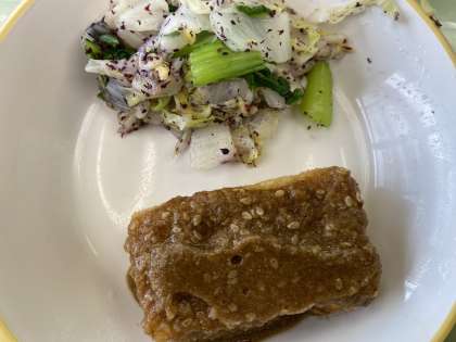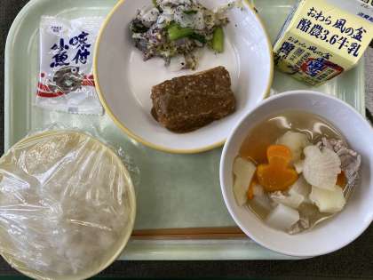 9月14日(木) 今日の給食 公開日 2023/09/14 更新日 2023/09/14 お知らせ・お願い 今日の献立は、ごはん、揚げ出し豆腐のごまだれかけ、ゆかり和え、豚汁、味付け小魚、牛乳です。 揚げ出し豆腐は、柔らかく、ごまだれがたっぷりかかっています。豚汁は、豚肉やこんにゃく、じゃがいもなど具だくさんで、一つ一つがおいしいです!ごちそうさまでした!