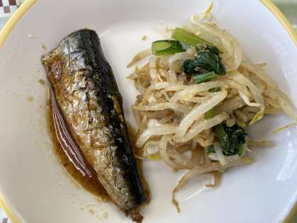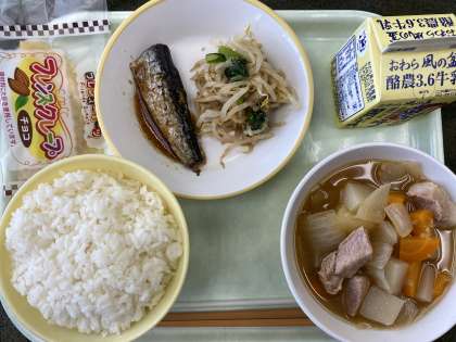 今日の献立は、ごはん、いわしの土佐煮、ごま和え、豚肉とじゃがいもの南蛮煮、牛乳です。