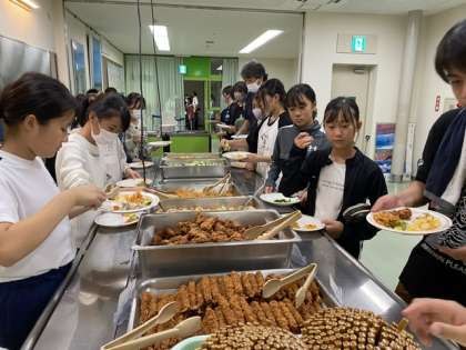 食堂で夕食です。バイキングです!