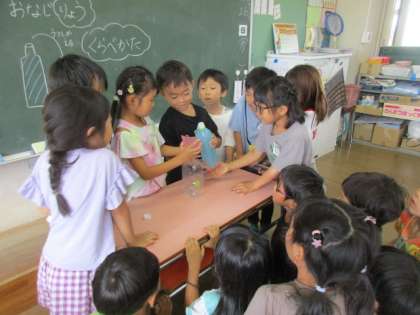 【1年生】どちらがおおい 公開日 2023/09/26 更新日 2023/09/26 1年生 水のかさを比べる方法を考え、試してみる子供達の様子です。 やってみると、やっぱり正しく比べられた!と満足感でいっぱいです。
