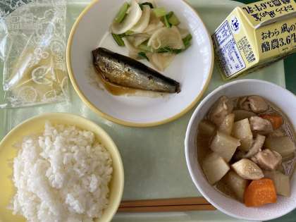 10月19日(木) 今日の給食 公開日 2023/10/19 更新日 2023/10/19 お知らせ・お願い 今日の献立は、ごはん、いわしの生姜味、かぶの色どり、鶏肉と里芋のごま煮、冷凍パイン、牛乳です。 鶏肉と里芋のごま煮は、里芋や大根が柔らかく煮てあり、ごまの風味が香ばしく食べやすくなっていました。 今日は少し暑いので、冷凍パインが冷たくおいしいです。