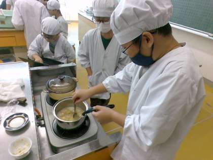 家庭科「食べて元気!ご飯とみそ汁」の学習で、調理実習を行いました。多くの子供たちがガスでお米を炊いたことがなく、お米に入れた水が沸騰していく様子や、時間をかけて炊きあがったお米にたくさんの歓声が上がりました。また、みそ汁作りでは、煮干しでだしを取ることから行いました。出来上がったご飯とみそ汁を食べるときには、自分で作り上げた料理の美味しさ感じながら食べました。