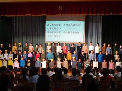 【3・4年生】学習発表会校内発表会 公開日 2023/10/19 更新日 2023/10/19 3年生 昨日行われた校内発表会の様子です。元気に歌い、セリフもしっかり言うことができました。本番が楽しみです。