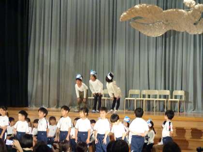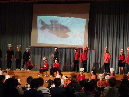 1年生は、くじらぐもの学習を生かし、2年生はスイミーの学習を生かし、元気いっぱいに表現していました。