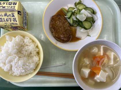 10月30日(月) 今日の給食 公開日 2023/10/30 更新日 2023/10/30 お知らせ・お願い 今日の献立は、ごはん、和風ハンバーグ、かぶのサラダ、卵と豆腐のスープ、牛乳です。 今日のハンバーグには、しょうゆや砂糖、みりんで味付けたたれがかかっていました。卵とスープのスープは温かくて体も温まりました。今日もおいしくいただきました!