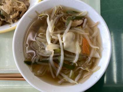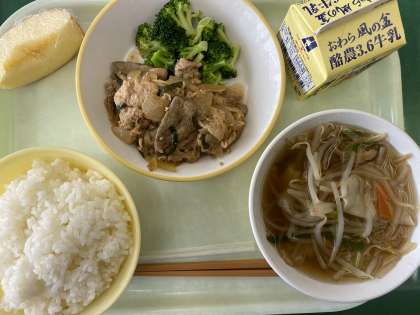 11月13日(月) 今日の給食 公開日 2023/11/13 更新日 2023/11/13 お知らせ・お願い 今日の献立は、ごはん、スタミナレバー丼、ゆでブロッコリー、ワンタンスープ、りんご、牛乳です。 スタミナレバー丼は、ごはんにのせて食べるメニューです。レバーや豚もも肉、たまねぎなどがたっぷり入っています。しょうがとにんにく、しょうゆの味付けて、食欲をそそります。 デザートにりんごが出ています。シャリッとしていました。 今日もおいしくいただきました!
