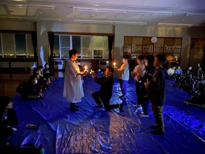 第一部おごそかな火の神が入場しました。 第二部はゲーム大会です。