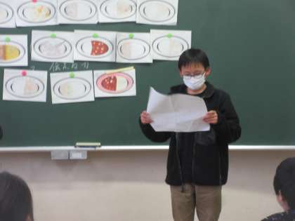Unit6のこれまでの学習を活用してオリジナルカレーについて一人一人発表しました。オールイングリッシュでの発表にも少しずつ慣れてきている様子が見られます。