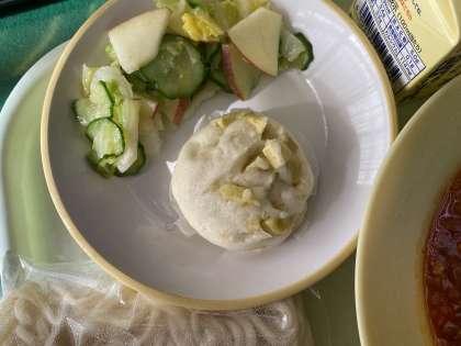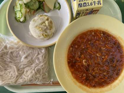 12月4日(月) 今日の給食 公開日 2023/12/04 更新日 2023/12/04 お知らせ・お願い 今日の献立は、ソフト麺のミートソース、蒸しパン、白菜とりんごのサラダ、牛乳です。 ソフト麺は子供たちに大人気のメニューです。ミートソースは酸味がきいていて食が進みます。サラダにはりんごが入っていて、あまく食べやすくなっています。今日もおいしくいただきました!