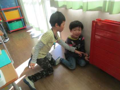 図工の時間にすきまちゃんを作りました。 みんなで教室の隙間にすきまちゃんを入れてあげました。