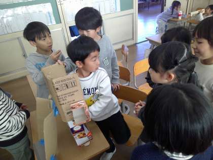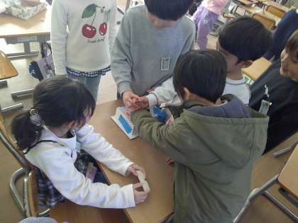 【1年生】あきのおもちゃで遊ぼう 公開日 2023/12/06 更新日 2023/12/06 1年生 先週作ったあきのおもちゃで遊びました。 さらに新たな遊び方を考えたり、友達と協力して作ったりと 子供たちの柔軟な発想がたくさんみられました。