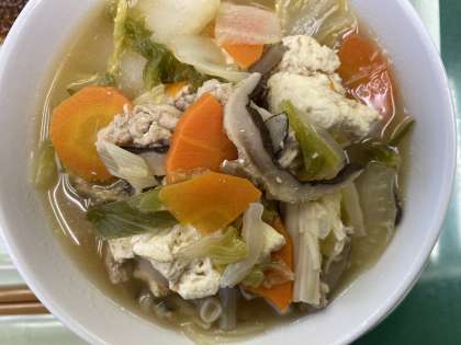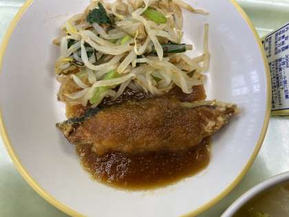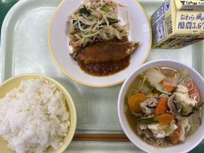 今日の献立は、ごはん、揚げ魚のみぞれだれ、昆布和え、白菜なべ、牛乳です。