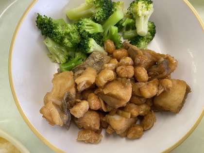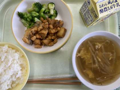 今日の献立は、ごはん、魚と大豆のねぎソースからめ、ゆでブロッコリー、中華かき玉汁、牛乳です。