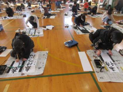 新学期のスタートと同時に書初大会を行いました。それぞれ、学校や冬休みの練習の成果を発揮していました。6年生は、「春待つ心」と書きました。どの作品もとてもすてきに仕上がっています。