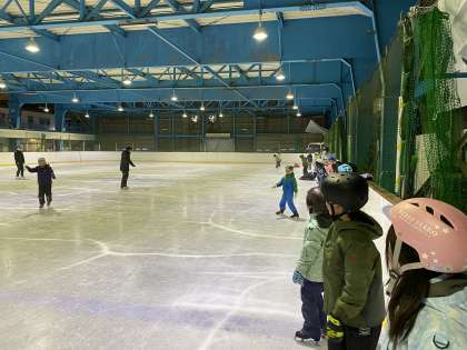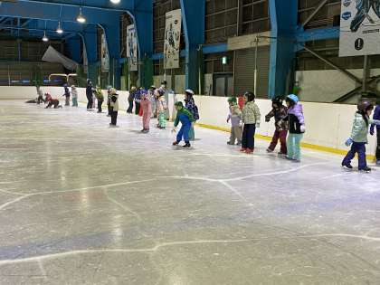 【3年生】スケート教室 公開日 2024/01/19 更新日 2024/01/19 3年生 今日、3年生のスケート教室が富山スケートセンターで行われました。 3年生は、スケート初体験の子がほとんどです。スケート靴に履き替えて、ドキドキしながらリンクに向かいました。 スケートセンターのコーチが氷上での立ち方や歩き方、転び方などの基本からていねいに教えてくださいました。 一生懸命練習したので、休憩でヘルメットを脱ぐと、頭の上から湯気が立っていました。