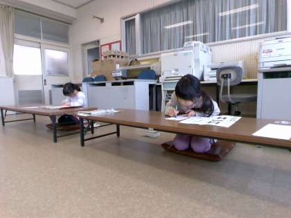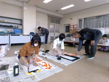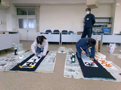県大会に向けて、代表者が練習を始めました。一筆一筆に心を込め、丁寧に書いています。先生方からのアドバイスをもとに、さらに上達していくことを願っています。