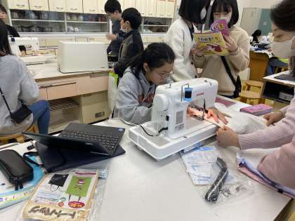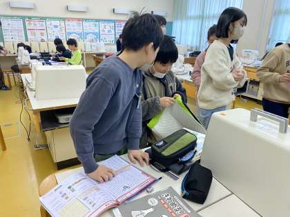 今日は、ミシンで周りを縫っていました。グループで教え合いながらがんばっています!