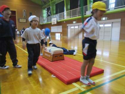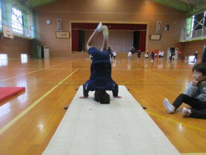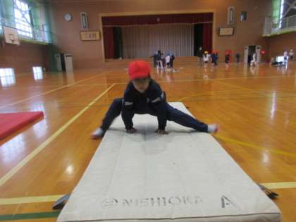 【1年生】できる技を増やそう 公開日 2024/02/05 更新日 2024/02/05 1年生 体育では、マット運動に取り組んでいます。 ぴたっと止まる技やスムーズに回転する技など、できる技を増やしています。