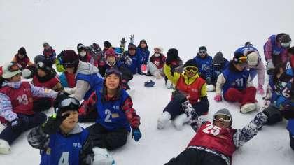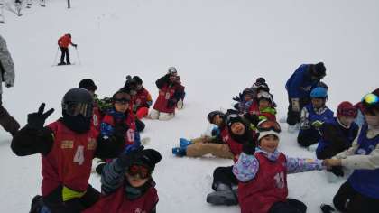 スキー場に到着しました。 みんな元気そうです。 この後開講式を行って午前の練習が始まります。