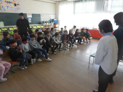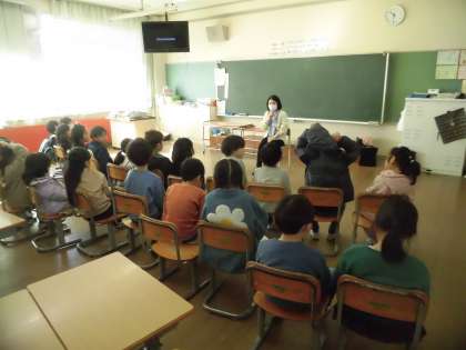 【1年生】婦中図書館学校訪問 公開日 2024/02/09 更新日 2024/02/09 1年生 婦中図書館より2名の司書の方が来校され、1年生に読み聞かせをしてくださいました。 たくさんの本を紹介してもらい、1年生の子供たちはニコニコでした。