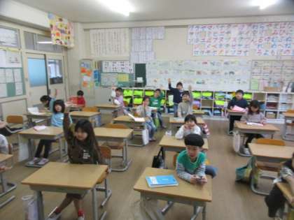 国語の時間に「これは何でしょうクイズ」を行いました。 全員、自作のクイズをして楽しみました。