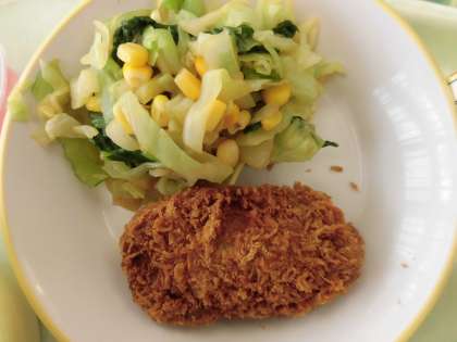 赤飯、とんかつ、コーンあえ、みそ汁、さくらゼリー、牛乳です。
